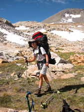 Прямо над нами хребет изгибался величественной подковой - и в ней, без сомнения, лежало наше вожделенное (на сегодня) Maclure Lake. Андрей сказал, что он больше не может, и побежал в сторону озера ставить палатку. Мы тоже постепенно подошли :-)