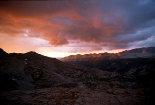 Было на редкость комфортно (ага... после камней в ребра...) Дождь вскоре перестал, но за хребтом громыхало, и закат выглядел... ну о-очень погано. Я вспомнила свои кавказские приметы, что чем красивее закат - тем гаже назавтра погода... примета-таки оправдалась и здесь, но об этом потом.