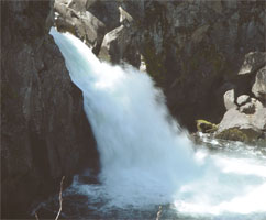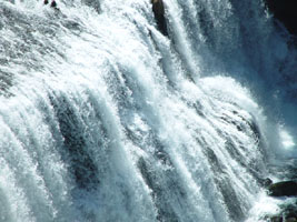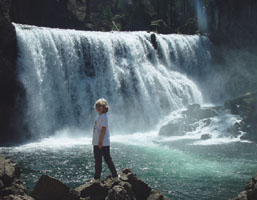 Следующий водопад возник из-за деревьев как-то уж совсем внезапно. И оказался (показался? :-)) неожиданно огромным. Впрочем, при ближайшем рассмотрении выяснилось, что он еще больше :-) Мы были в полном восторге от брызг, шума падающей воды, бегающих по берегам солнечных бликов...
