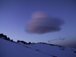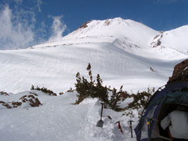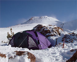 Благодарая тихому теплому вечеру, в палатку погрузились уже перед самым отбоем. План на завтра составили следующий : поскольку из описаний известно, что а) на Шасту залезается за 8 часов, б) где-то после часа дня на вершину садятся облака, а спускаться в облаках - занятие не из приятных - то встать надо в 3 часа ночи, с тем, чтобы выйти из лагеря в пять утра. А дальше - как пойдется, хотя желательно бы побыстрее, дабы, спустившись с горы, собрать барахло и убежать вниз, в цивилизацию. С такими мыслями и начали укладываться спать.