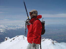 В какой-то момент ребята, дежурившие у подъемника, подозрительно воззрившись на наши мешки, спросили : "А билеты-то у вас есть?" - "А то!" - уверенно ответил Миша, и мы опять поехали наверх. По дороге со вкусом продискутировали, что вот - сбылась мечта лыжного туриста : рюкзаки легкие, катуха хорошая, и наверх переться не надо - машина довозит :-))