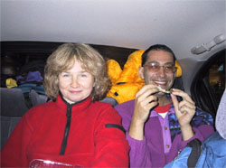 Недостающее снаряжение было взято напрокат в одном из многочисленных магазинов, подобным снаряжением торгующих. Предварительно пришлось произвести "разведку со словарем", дабы выяснить, как именно называются кошки, кайло и прочие детали туалета ("но - панталоны, фрак, жилет - всех этих слов на русском нет" :-)) Разумеется, возникли обычные проблемы с моим размером ноги. Работники магазина минут двадцать подбирали мне кошки на ботинки, попутно обзывая "Золушкой" и выясняя, куда это я собралась, и придется ли там ходить на передних зубьях.