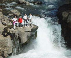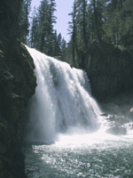 Уф. Вроде ничего не упустила :-) Ну вот, переночевали мы в сем чудесном месте, а наутро (Миша опять поднял нас ни свет ни заря) собрали барахло и поехали в сторону дома. Но, поскольку у нас в сущности получился целый неиспользованный день - мы решили потратить его с толком и где-нибудь погулять. Ближайшим "где-нибудь"ем оказался... дай Бог памяти... нет, не помню - короче, очередной National Forest, знаменитый своими водопадами. На каковые водопады мы и отправились посмотреть.