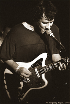 а посреди этого взрыва исступленно носится с безумным ликом Гаркуша, звеня, дудя, брякая и дергаясь, подпевая во все попадающиеся по дороге микрофоны - и объединяя творящееся вокруг действо в один могучий концентрированный поток, натомашь хлещущий в радостный и жаждущий зал... И, в общем, становится уже совершенно неважно, что из-за паршивой аппаратуры текст песен различается с трудом и только продвинутыми адептами - какой, нафиг, текст : при такой энергетике ребята могли хоть алфавит петь - результат был бы тот же.